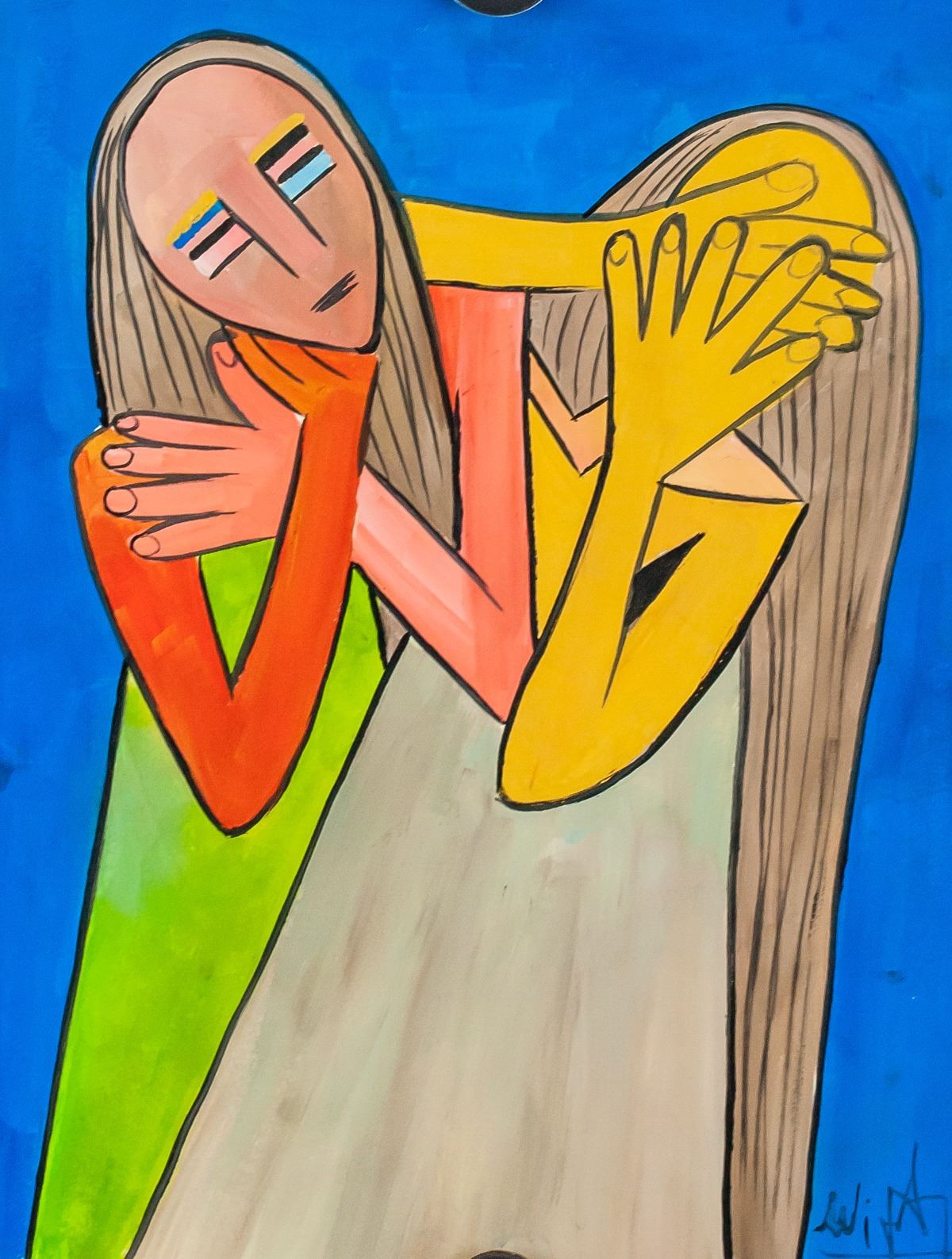 Gouache on paper. Featuring a surrealist portrait of two figures. Signed WiLam on the lower right corner. Attributed to Wifredo Lam (1902-1982, Cuban). 25 x 18.5 cm (9.75 x 7.25 inches)