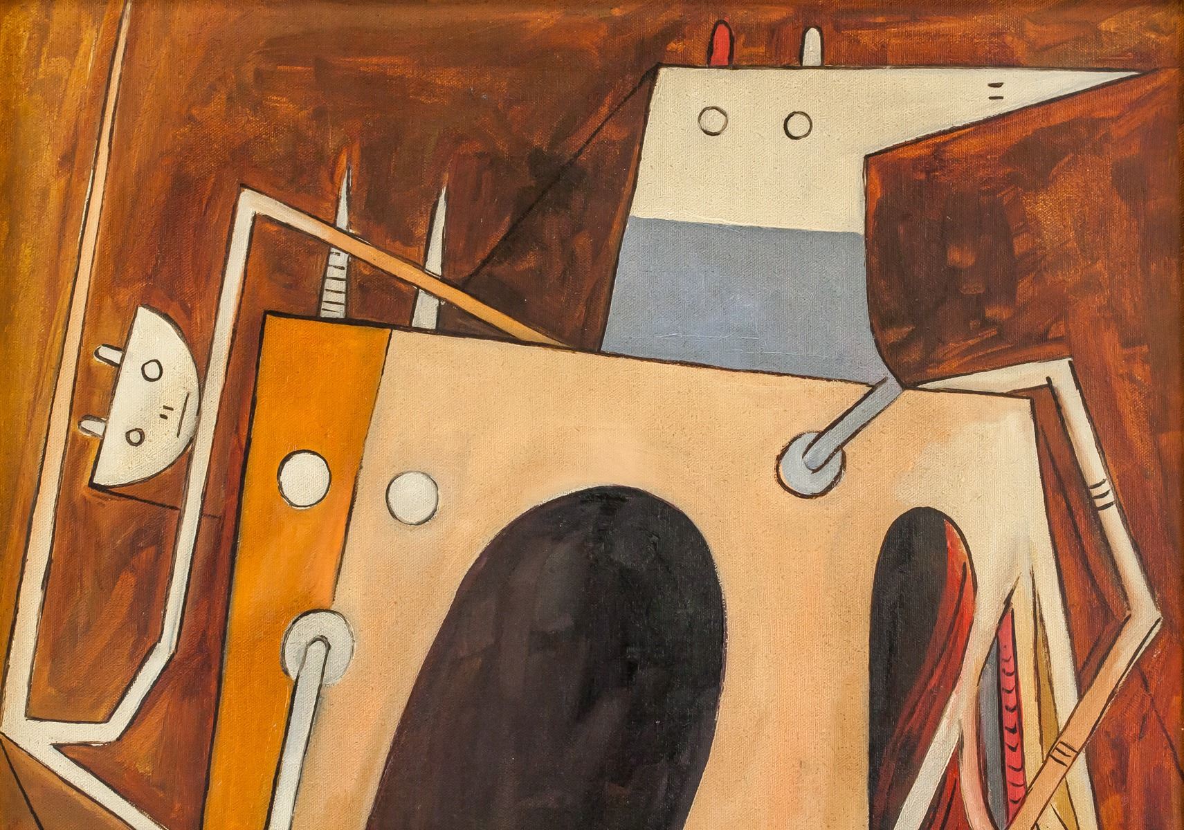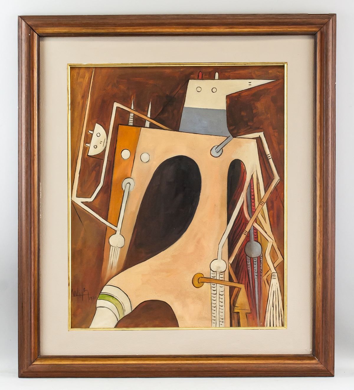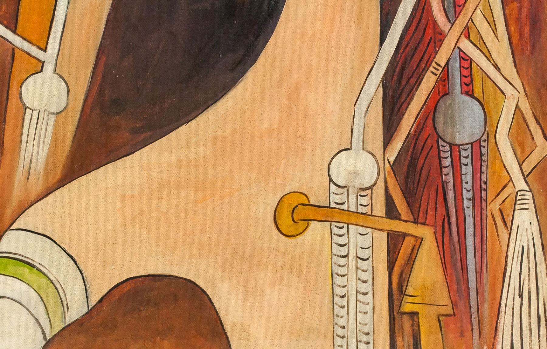 Oil on canvas, framed. Featuring a cubist figure portrait with a smaller figure on the shoulders. Signed Wil Lam and inscribed 1970. Attributed to Wifredo Lam (1902-1982, Cuban). 58 x 48 cm (22.8 x 18.9 inches). Frame size: 77 x 68 cm (30.3 x 26.8 inches)
