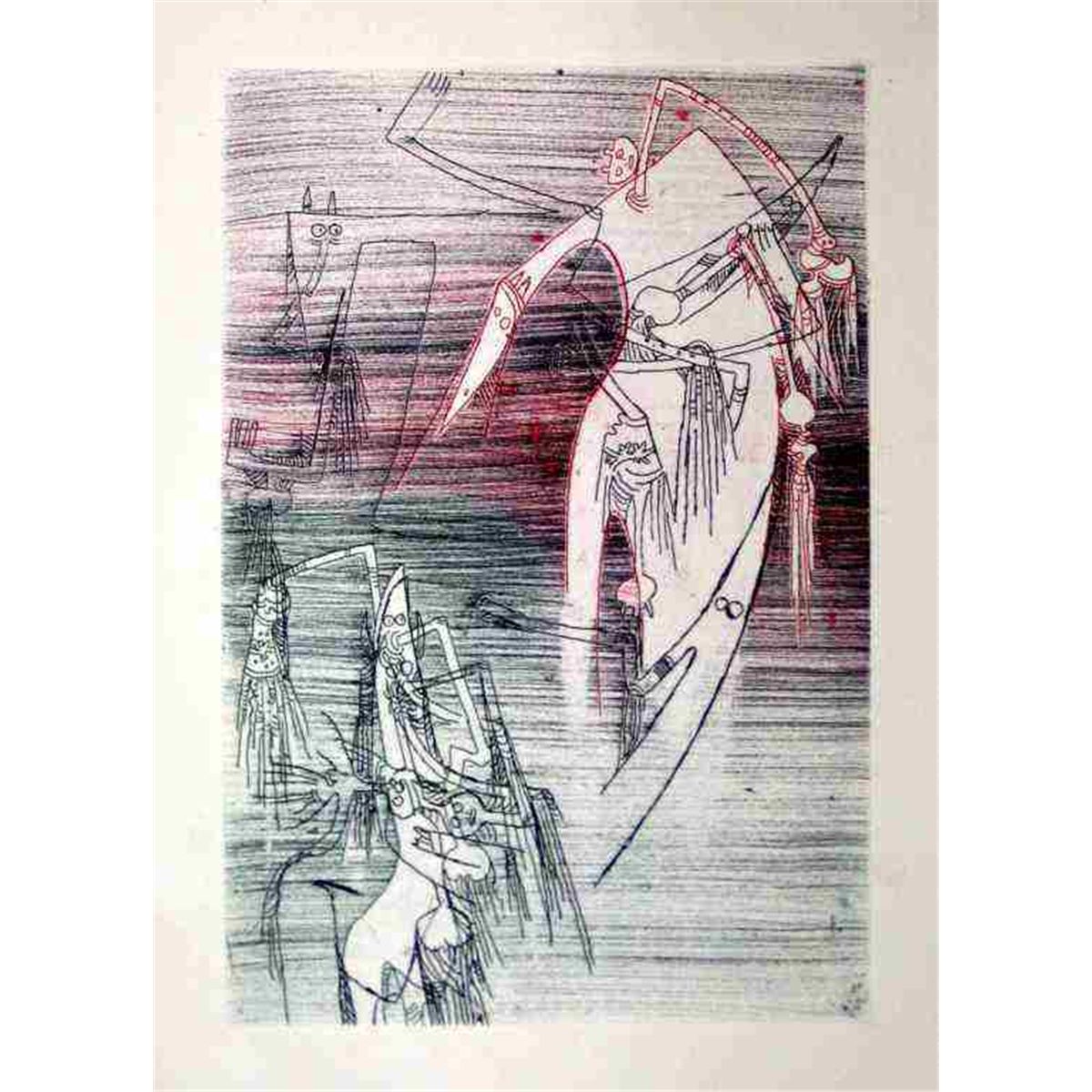 Wifredo Lam Original Etching. Executed In 1965 For Paroles Peintes Ii, From The Edition Of 150 On Johannot Wove Paper. A Limited Number Of Signed Proofs Were Also Issued; This Impression Is Not Signed. Plate Size 10 1/2 X 7 Inches- Professionally Framed & Matted - Comes With Certificate - -