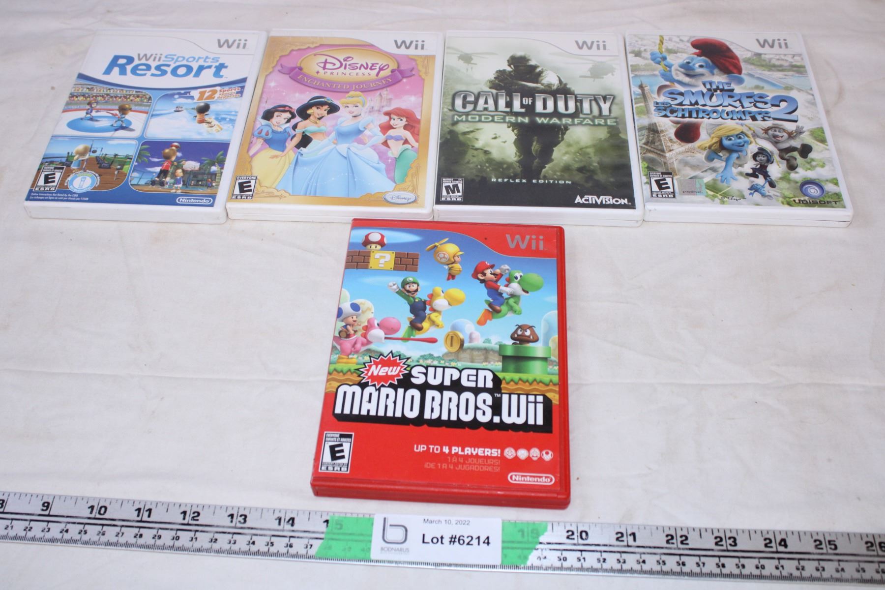 Wii Games, Super Mario Bros(some scratches on disc) with 4 other Wii games