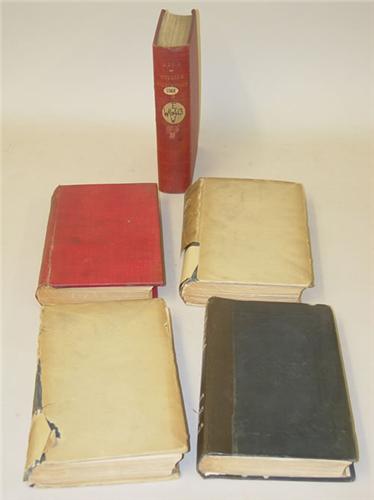 Wilberforce, Robert Isaac & Wilberforce, Samuel. The Life of William Wilberforce - 5 Volumes. London: John Murray, 1839. 8vo - over 7¾" - 9¾" tall. Hard Cover. Ex-Library. Poor Condition. Second Edition. Wilberforce (1759-1833) was a British politician, abolitionist and leader of the Parliamentary campaign against the slave trade. Vol. 1 - Half title, frontis w/tg, x, 396pp, errata, Directions to the binder. Library cloth over boards, hinges cracked, binding slightly loose. Vol. 2 - Half title, fold-out frontis, title, 464pp, errata with paper over original boards, binding loose. Vol. 3 - Half title, title, 568pp, errata, bound in library buckram. Vol. 4 - Half title, frontis w/tg, title, 397pp, 3 fold-out facsimiles, errata. Covers detached, lacks backstrip, paper over boards, binding tight. Vol. 5 - Half title, frontis w/tg, title, 412pp, errata. In original binding, cloth tape over backstrip, front hinge spilt, back hinge taped. COMPLETE.