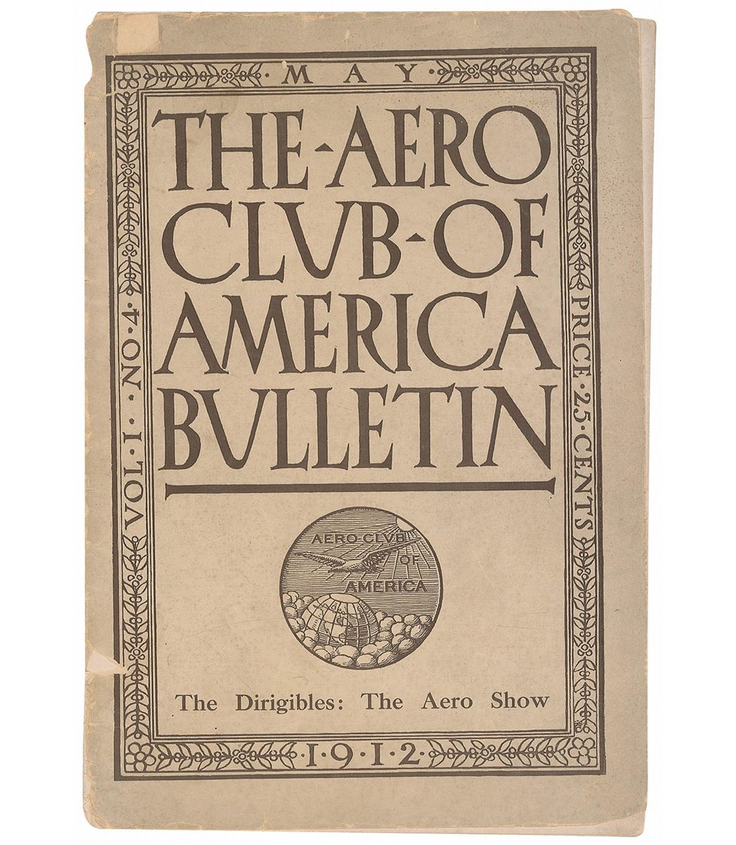 In very good condition, with two horizontal mailing folds, aforementioned notations, staple holes to upper left corners, and scattered soiling. Accompanied by an original May 1912 edition of The Aero Club of America Bulletin.