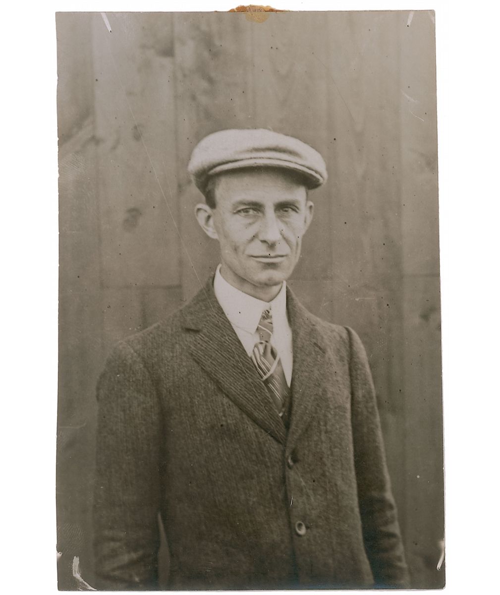 Original 3.25 x 5 half-length portrait of Wilbur posing outside in Le Mans, France. Reverse bears an “M. Branger, Paris” photographer’s stamp. In fine condition, with mounting remnants to reverse.