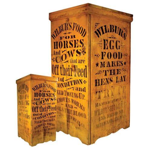 Wilburs Food for Horses and Cows Store Display Box. The Wilbur Seed Meal Co. Milwaukee, WI. Original stenciling, very good original condition. 16 1/4 X 36 1/4 X 19 inches.