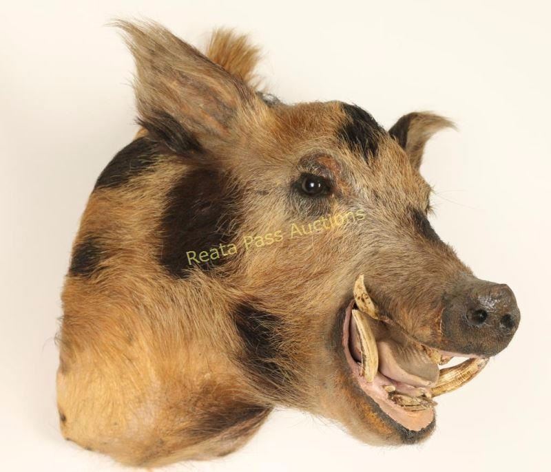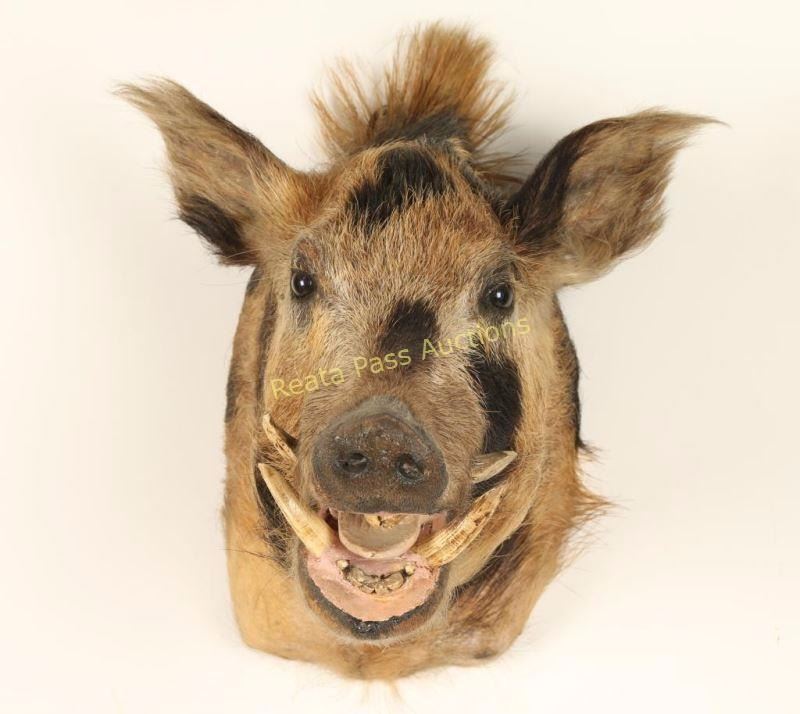 Spotted boar measures approx. 14"h x 14"w x 17" from wall to end of snout. Small losses on underside next to wall otherwise good.