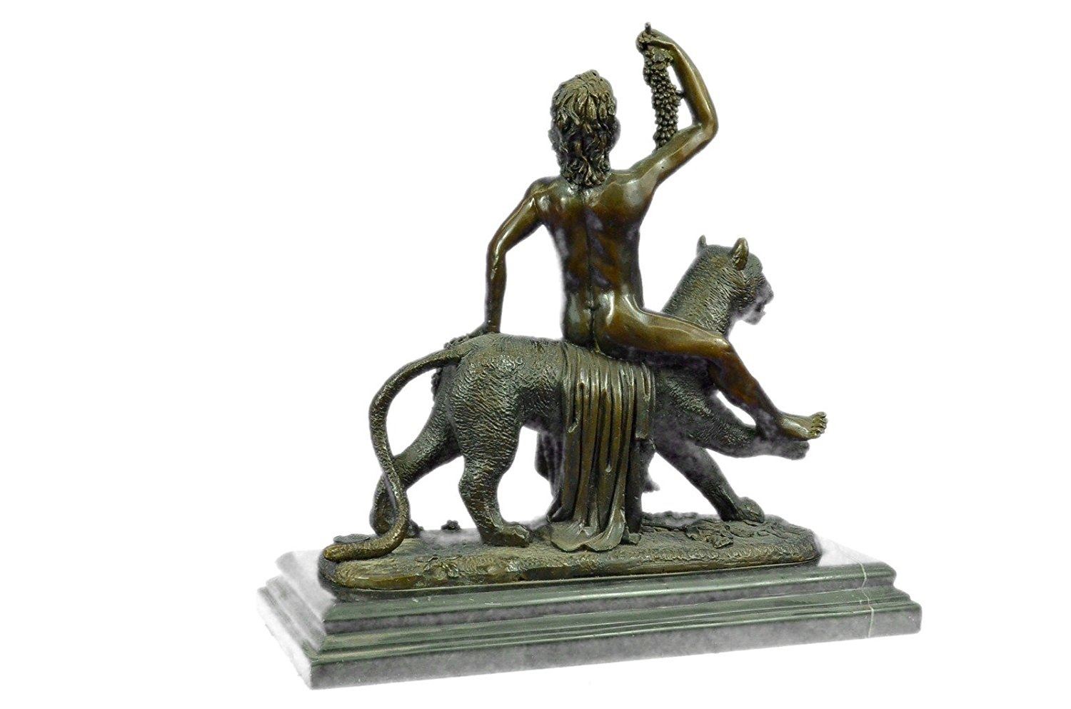 This is a Bronze Sculpture of the wild child Mowgli, enjoying the bounty of the jungle upon his trusted friend, Bagheera. Mowgli is a fictional character from India who originally appeared in Rudyard Kiplings short story In the Rukh and then went on to become the most prominent and memorable character in his fantasies The Jungle Book and The Second Jungle Book 1894 - 1895. In the book The Jungle Book, Bagheera was a panther who was portrayed as a clever, serious and a responsible character. In the film, it is Bagheera and not the wolves who first finds Mowgli, a young village child and he is the one who takes him back to the village. Bagheera spoiled Mowgli more and protected him from the dangers of the jungle. The 100% handmade Bronze Sculpture, was cast using the early method of lost wax casting and stained with a brown patina finish for preservation. Bronze Dimensions with Marble Base: Height 14 X Width 14 inches. Weight: 24 LBS.