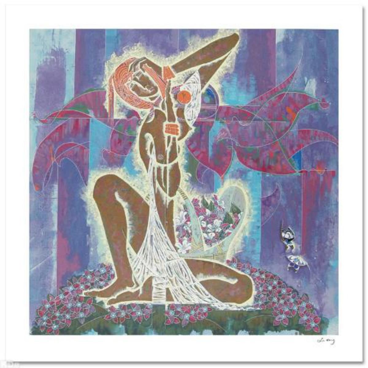 Lu Hong's work, collected worldwide, is often characterized by the use of vibrant colors and emotive lines. "Wild Flowers" is a limited edition serigraph on paper, numbered and hand signed by the artist. Includes Certificate of Authenticity! Measures approx. 38" x 37" (with border), 33" x 32" (image). Reference #: 168286.