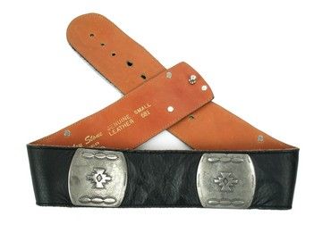 Mid-life crises is the pits. But four middle-aged men decide to do something about it by taking their "bikes" and going on a cross country road trip before they sink forever into their couches. That's the premise of the hit (2007) "Wild Hogs". This is a leather belt worn by one of the "bad girls" they encounter (and test them to an inch of their lives!). The belt has two designed Conchos. approx. 2' 9" x 2.5")