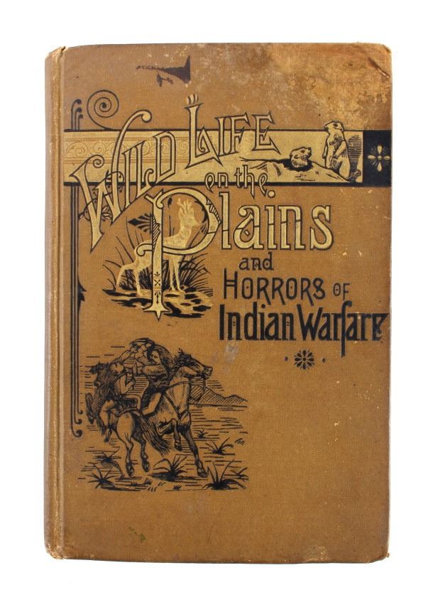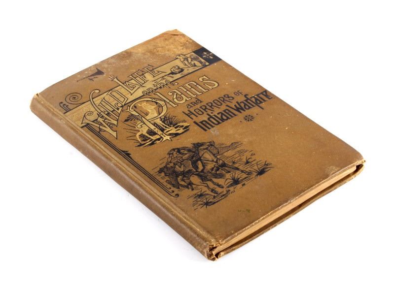 This is a RARE salesman sample of "Wild Life on the Plains and Horrors of Indian Warfare" from circa 1891. The book features an abbreviated version of the full book offered in the previous lot in this sale. The cover shows an illustrated war scene with gilt decoration. Inside the front cover has a Moroccan leather sample. The book contains numerous illustrations with blank order pages in the rear. The salesman sample book is in good condition. It measures 6.25" x 9.25".