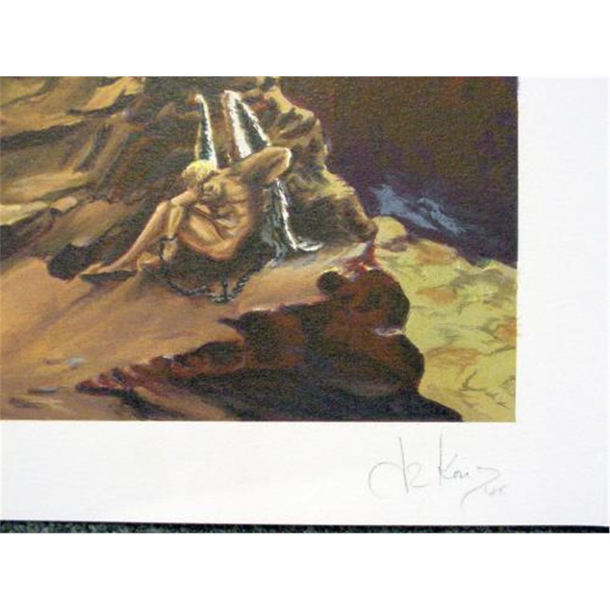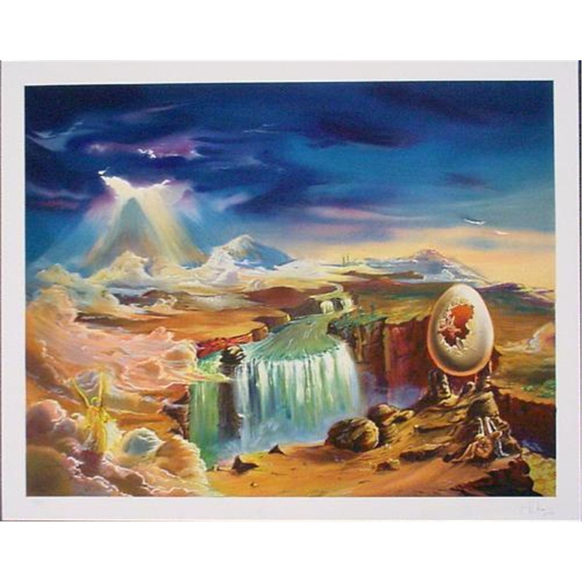 Here is a very dynamic and mysterious signed Surreal limited edition fine art print: * Title: "The Birth" * Lithography on Arches * Artist signature in pencil LR; illegible * Numbered in pencil LL * Sheet size: 21½ × 27 * Good condition; soil in the margin; nothing major * * An interesting print by a talented artist we wish we knew more about! *