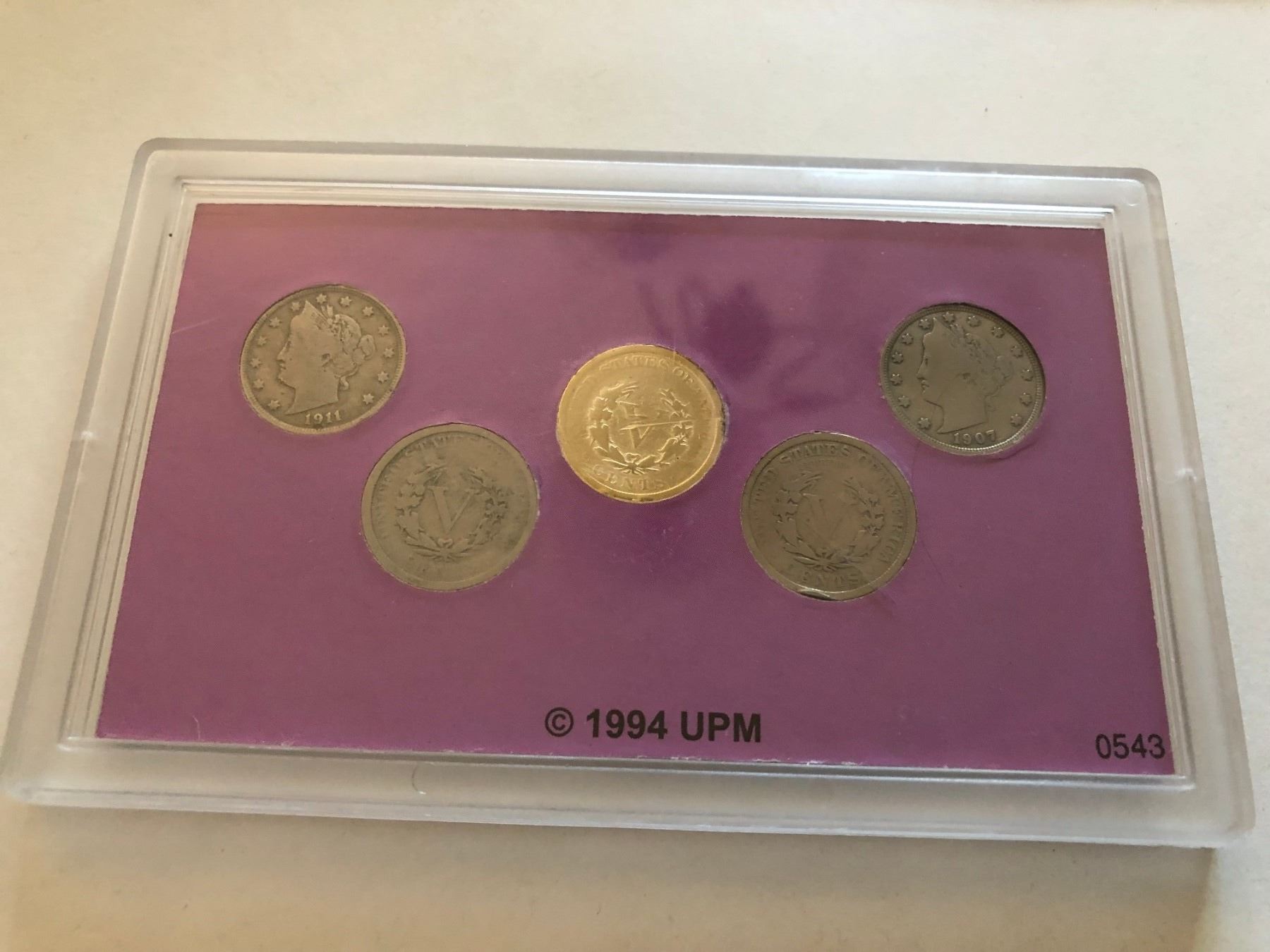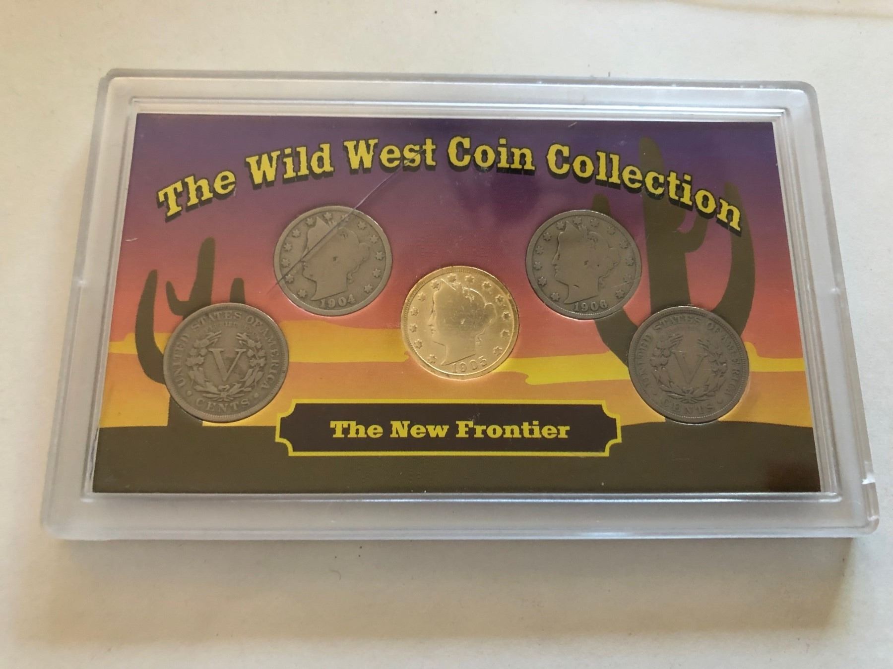 Wild West 5 Liberty Nickel Coin Collection in Hard Display Case