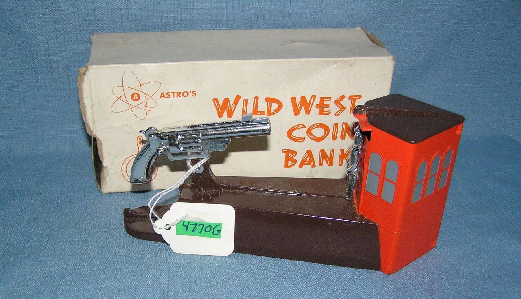 Wild West mechanical bank painted version circa 1960s with original box est. value $275.00-$300.00