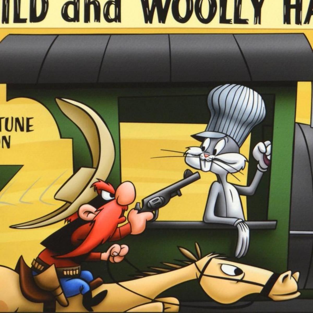 "Wild & Wooly Hare" is a limited edition giclee on paper from Warner Bros., numbered with hologram seal of Authenticity. This image was originally used as a "lobby card" displayed in theater lobbies to publicize animated shorts. Also, includes Certificate of Authenticity! Measures approx. 20" x 16" (with border), 16" x 12" (image).