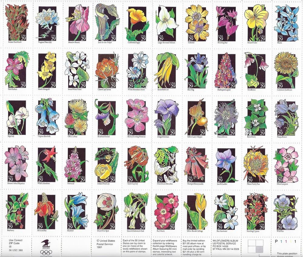 Wildflowers Stamps, sheet of 50, 29 c, July 24, 1992