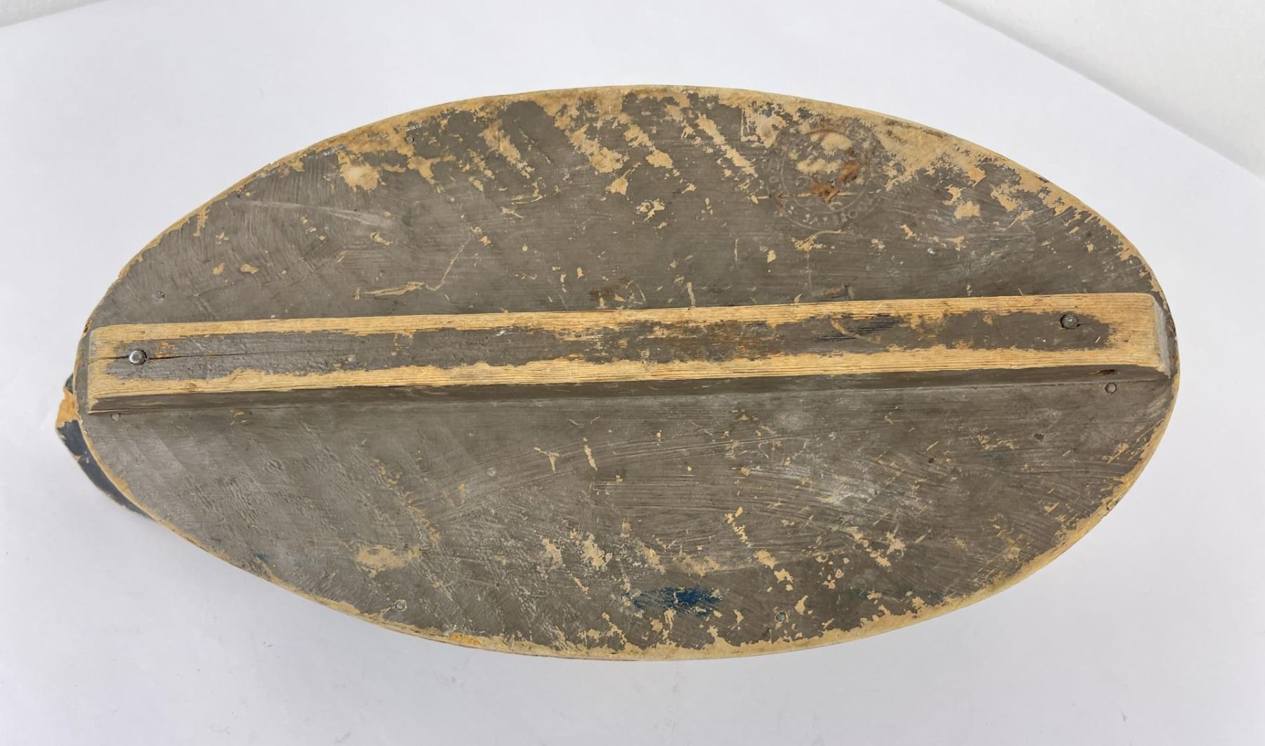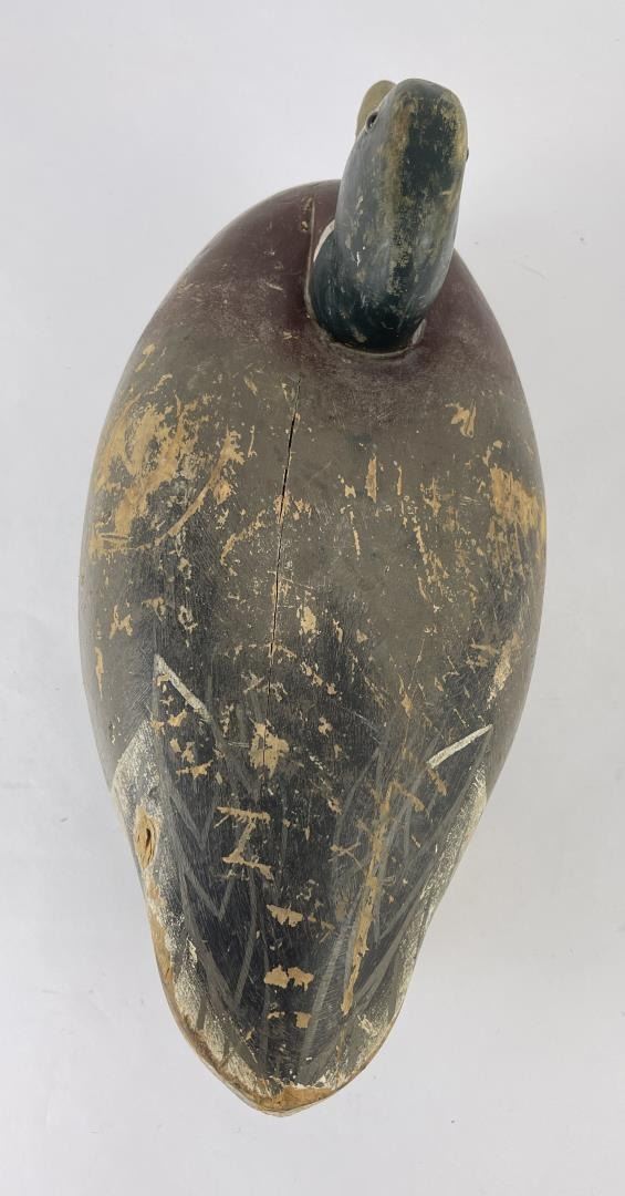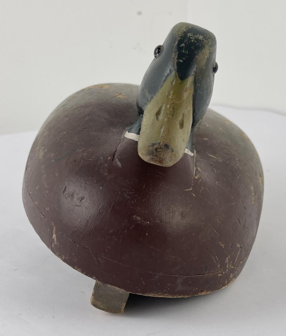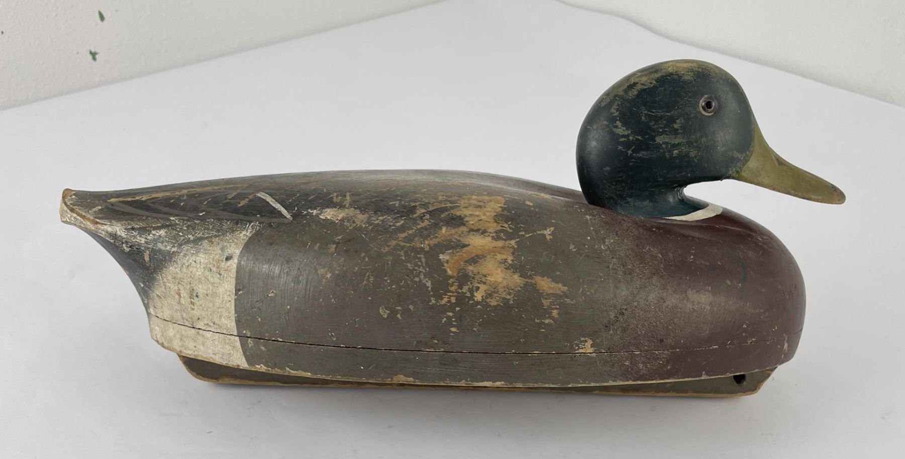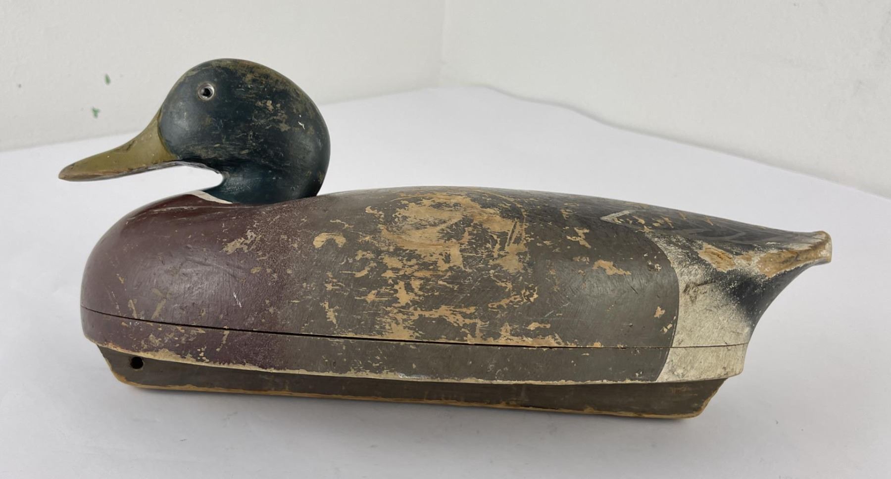 Hollow body, full bottom board. Mallard drake. 14" long, original paint.