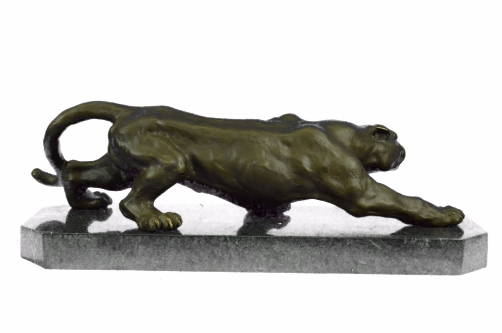 A Lioness Wanders Through Her Wild African Habitat After Chasing Away A Predator From Her Cubs. She Is Fierce Yet Nurturing, Ready To Fight To The Death To Protect Herself Or Her Young. The Deep Carving Of This Sculpture Are A Tribute To The Rugged Strength Lions Possess. She Appears Somber Here, Adopting A Slow Pace And Representing A Duality Of Strength And Calmness. This Piece Was Cast Using The Lost Wax Method And Is A Reproduction Of French Artist Bugatti. Bronze Dimensions With Marble Base: Height 6 X Width 16 inches. Weight: 19 Lbs.