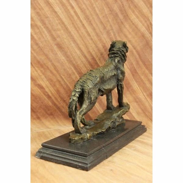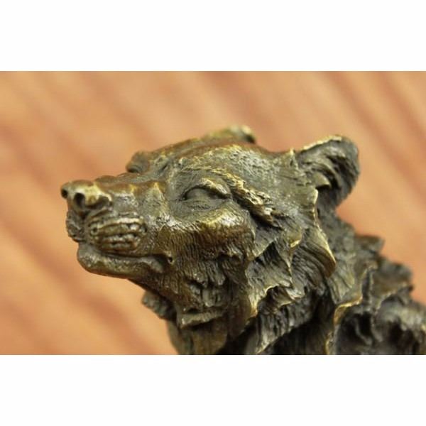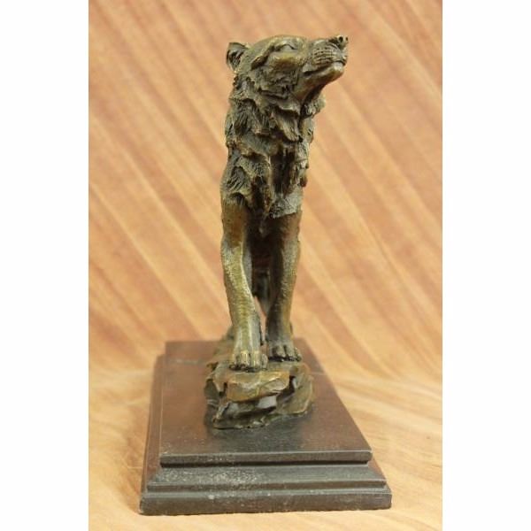 This fine sculpture was crafted by the world-renowned French artisan, Barye. Humans historically have had a complex and varied viewpoint of wolves. In many parts of the world, wolves were respected and revered, while in others they were feared and held in distaste. The latter viewpoint was notably accentuated in European folklore beginning in the Christian era, though wolves did feature as heraldic animals on the arms and crests of numerous noble families. Many languages have given names (almost universally masculine) meaning wolf. Wolves also figure prominently in proverbs. This is an excellent piece depicting a cunning and mysterious wolf, featuring the lost wax method of casting, founded thousands of years ago ensuring an exquisitely detailed sculpture that will add grace and beauty to your business or home. Signed Barye. Get one for the animal lover in your life Condition : This sculpture is in perfect condition. Bronze Dimensions with Marble Base:Height 10 x Width 12 Marble Dimensions: 11.5 X 5 Height without base: 9 Weight : 14 LBS Inventory : 78YDW1786087 Please Note: This is a reproduction bronze sculpture from the original molded and signed. This featured bronze sculpture is a recast after the original, and has been done recently. This 100% bronze sculpture is an abstract piece certain to be a conversation piece.