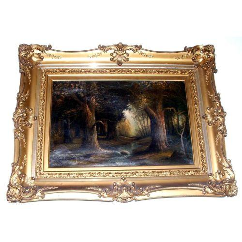 20th century oil on canvas, Signed "Wiley"-wooden landscape painting -28" X 36"