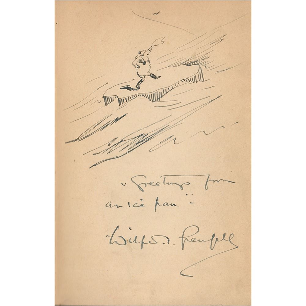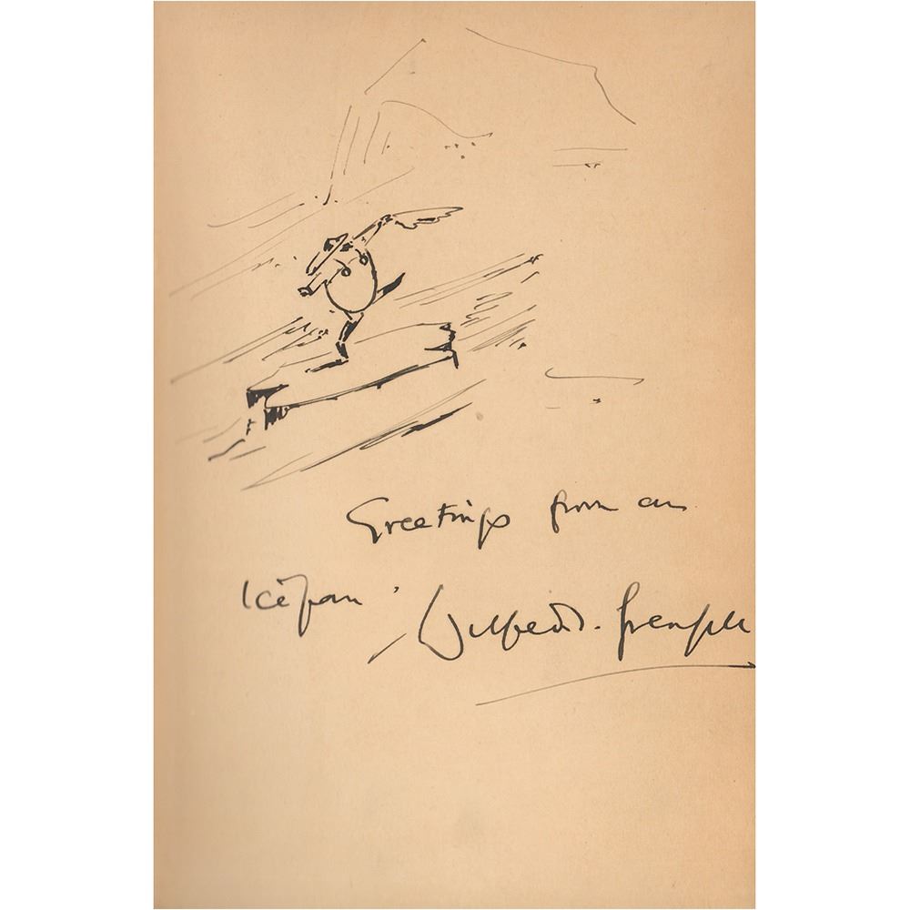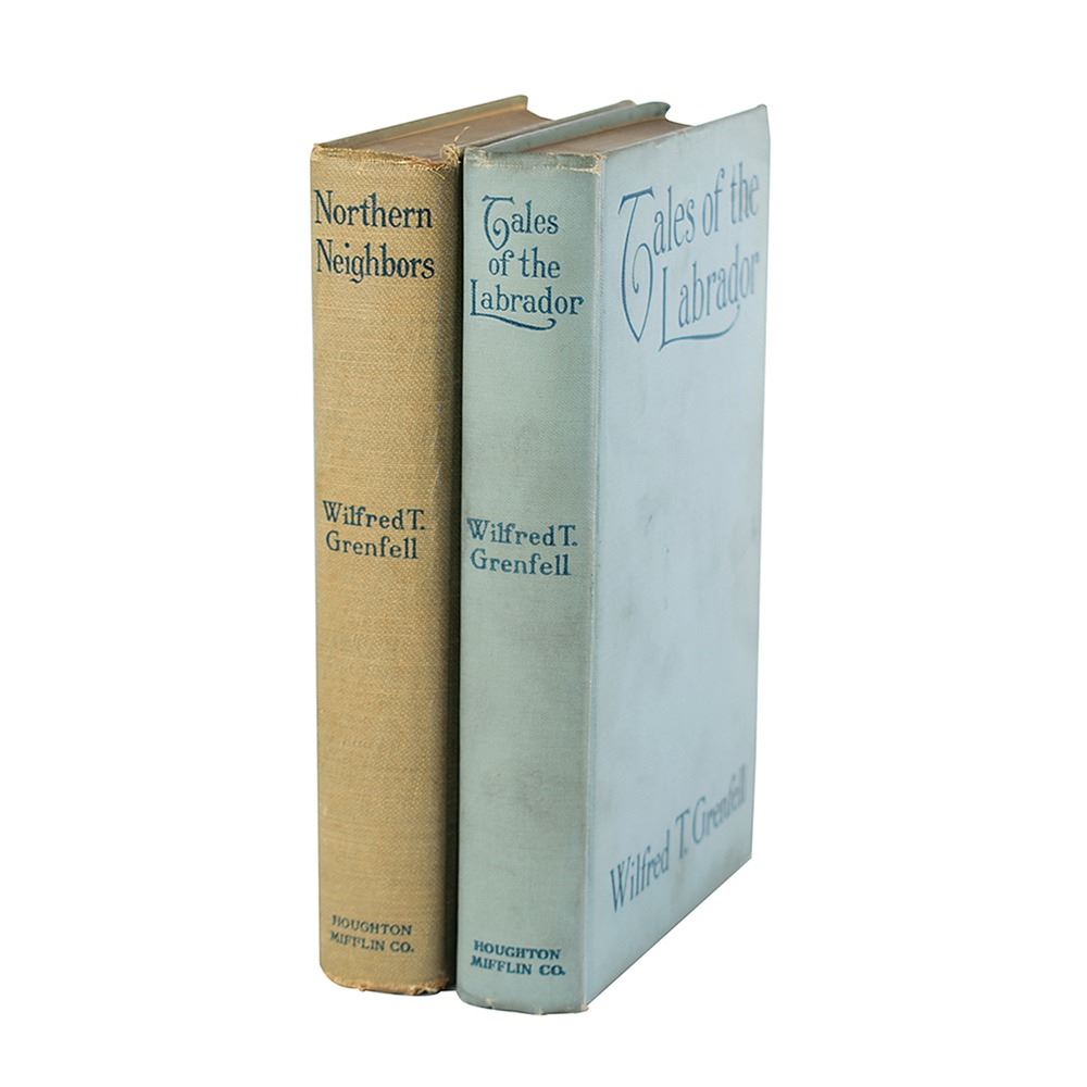 Two signed books, both later printing hardcovers: Tales of the Labrador and Northern Neighbors, both signed on the first free end page in ink, "'Greetings from an ice fan,'‰ÛÓWilfred T. Grenfell," with playful sketches of a man on a small patch of ice in the middle of the ocean. In very good to fine condition, with minor rubbing to boards and slight fraying to spine ends of Northern Neighbors.