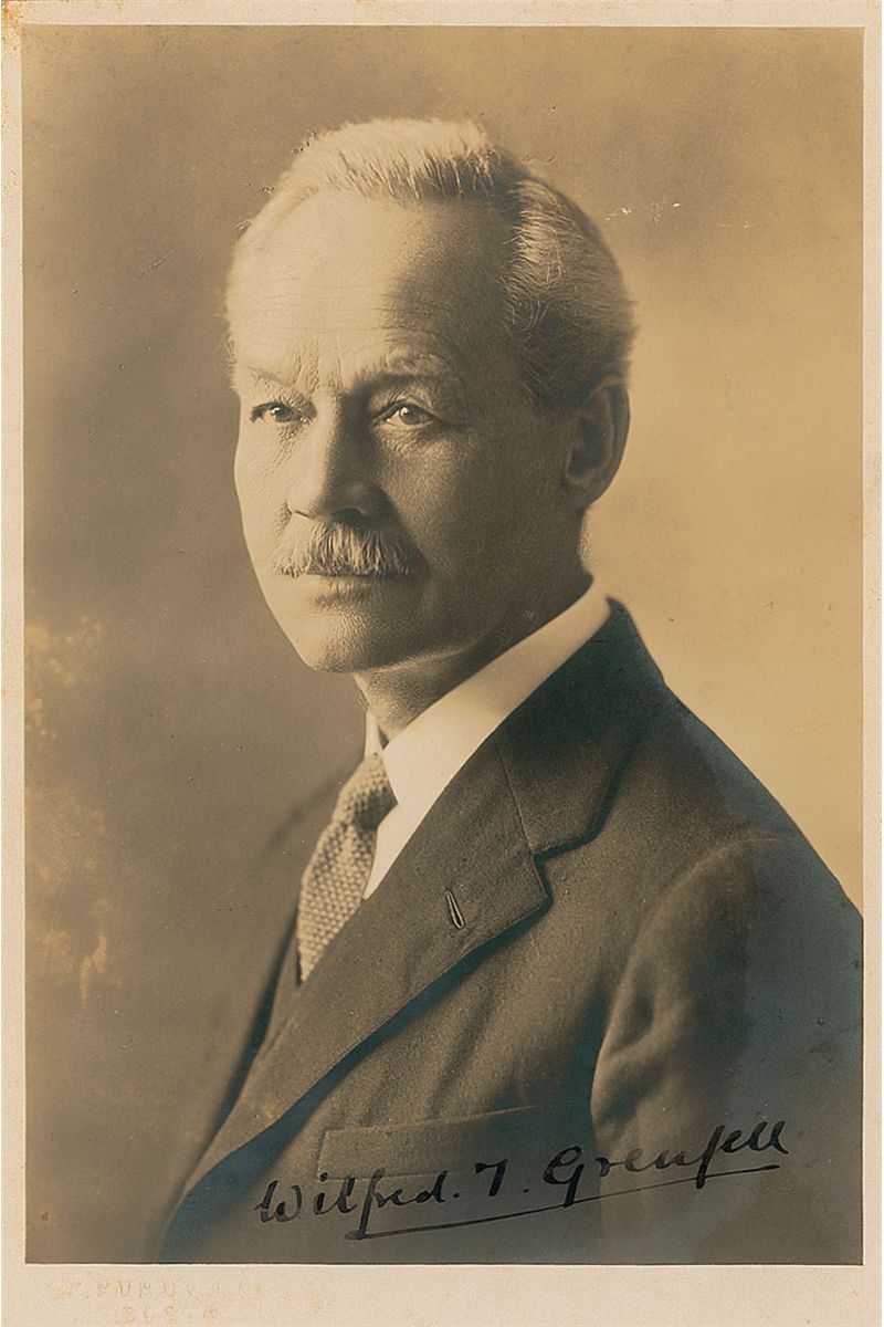 British physician (1865–1940) known for his medical missionary work in Newfoundland and Labrador. Vintage matte-finish 6 x 9 photo by E. Purdy and Co. of Boston, signed in fountain pen. In fine condition, with some light silvering to darker areas of lower portion of image.