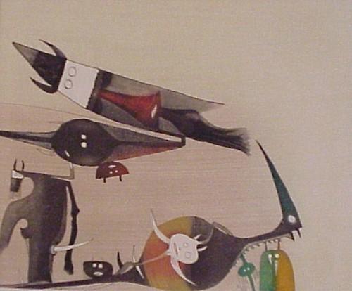 Wilfredo Lam (1902-1982) Cuban, SANS TITRE (plate 5), color aquatint etching, signed in pencil,...