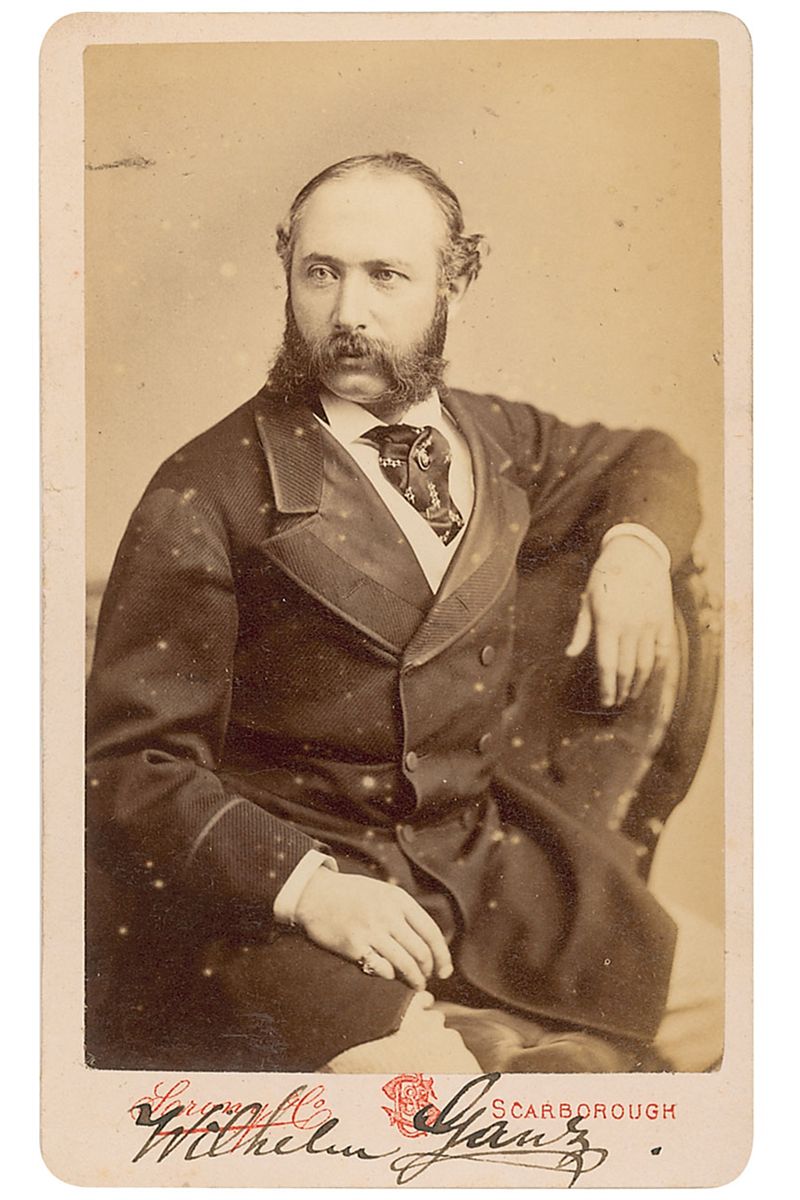 German pianist (1833–1914) known for performing the works of Liszt and Berlioz, and accompaning to Jenny Lind. Original 2.5 x 4 carte-de-visite portrait of Ganz by Sarony of Scarborough, signed in the lower border in black ink. In fine condition, with scattered spotting and silvering to the image.