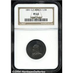 <B>Wilhelm II 1/2 Rupie 1891, </B></I>KM4, Proof 63 NGC, choice blue and gold toning. <BR><BR><B>Important notice:</B> Heritage usually auctions material at the rate of 200-250 lots per hour. On some occasions eBay Live bid software or the Internet may not be able to keep up with the pace of the auction. We recommend placing a realistic absentee bid now as insurance to avoid disappointment. Occasionally the auctioneer may eliminate or reject an eBay Live bid, and the auctioneer may also reopen a lot after the close of the eBay live bidding (usually because we missed an audience bid), and may reject your bid even if it shows you as the winning bidder. By bidding via eBay Live, you agree that Heritage may award the lot to another bidder at its sole discretion under the circumstances described above or any other reasonable circumstances. Since eBay bids are not shown to us until we open the lot on the floor, we treat those bids just like floor bids. In most cases the floor responds before the eBay bid is presented to us, due to Internet lag time, so for consistency we have made it a policy that floor bids are always considered first over tie eBay live bids. Also please note that all Heritage lots purchased through eBay Live carry a 20% Buyer's Premium. Please make sure you read the Terms and Conditions before you bid.
