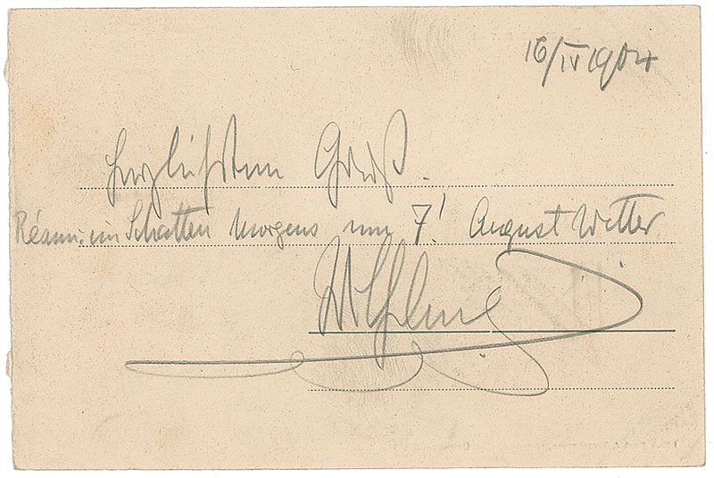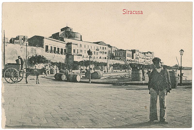 Vintage 5.25 x 3.5 postcard featuring an image of Siracusa, Italy on the front, signed on the reverse in pencil below a brief untranslated ANS in German, and dated April 16, 1904. In fine condition, with trivial soiling and a couple light fingerprints.