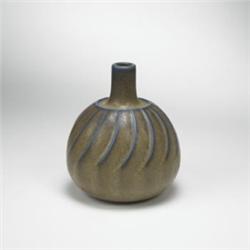 Wilhelm Kage vase Gustavsberg Sweden, 1950s glazed stoneware 7"dia x 7 "h Signed with impressed factory marks.