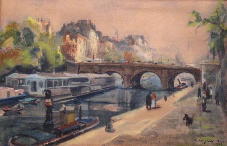 Wilhelm Wagner, , 1887 - 1968, The Seine in Paris, 1927, Watercolor, 35x53cm, Signed and dated., , , , ,