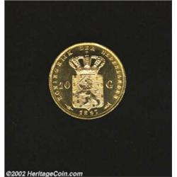 Wilhelmina Gold 10 Gulden 1897, KM118, Choice Brilliant UNC, a superior example of this attractive type. Important notice: We expect to be auctioning lots at the rate of 200-250 per hour. Sometimes eBay Premier live bid software cannot keep up with that pace, so we strongly recommend that you place a realistic proxy bid now as insurance to avoid disappointment. Also please note that all Heritage/CAA lots purchased through eBay Premier carry a 20% Buyer's Premium. Please make sure you read the Terms and Conditions.