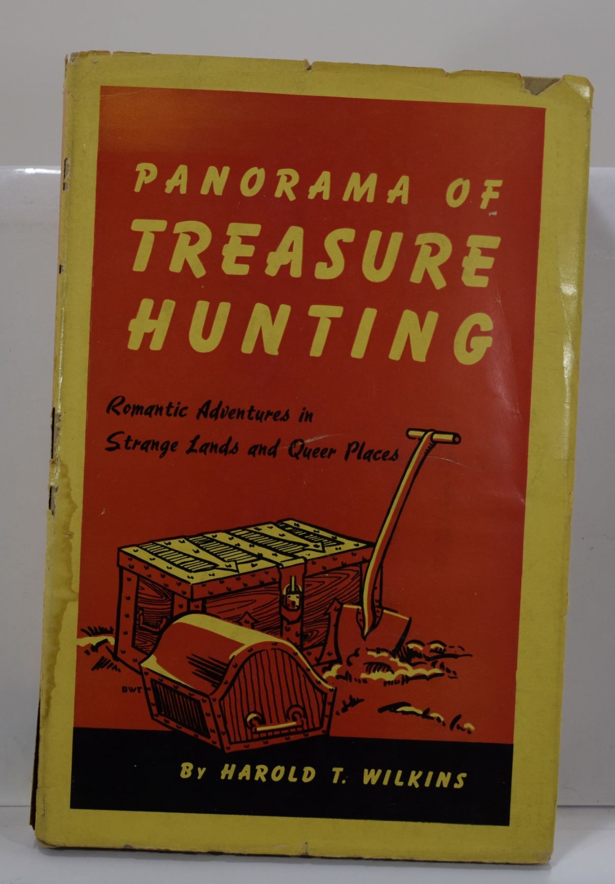 Wilkins, Harold T. PANORAMA OF TREASURE HUNTING: ROMANTIC ADVENTURES IN STRANGE LANDS AND QUEER PLACES. E. P. Dutton & Company. 1940. 8vo, 582 pages; Hardcover w/ DJ; DJ has chips and some tears; This book relates numerous treasure stories from all over the globe, both land and sea. Among the sunken treasure stories are the "Merida", the "SS Central America", the "Hussar", the Vigo Bay galleons, "Le Chameau", and the "Telemaque". Much of the information in this book is also contained in the author's earlier books. Subject: History - Treasure Hunting