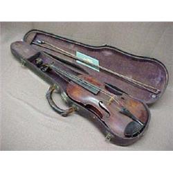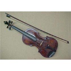 Violin, paper label "Thos. Perry and W. Wilkinson Musical Instrument Maker No. 4 Anglesea Street, with bow having mother of pearl fittings, in leather case