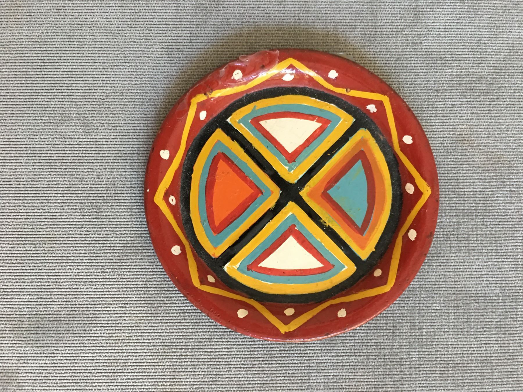 Will Evans (1877-1954). Painted tin lid, tin, all polychrome painted in a geometric design.