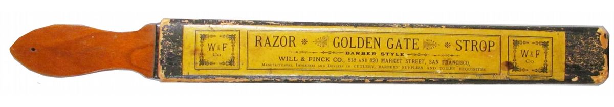 Will & Finck, Golden Gate, Razor Strop. Will & Finck Co., San Francisco. Mfg. Cutlery, Barbers' Supplies and Toilet Requisites. Some wear to sheath otherwise very good condition. 17 1/2 inches long.