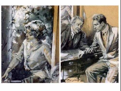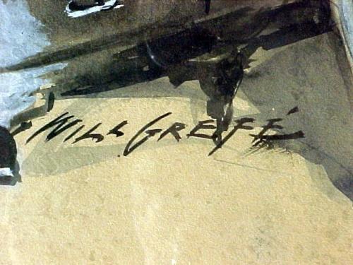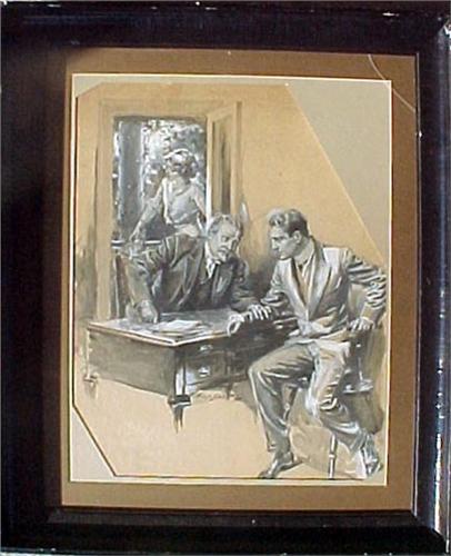 Will Grefe watercolor "The Pull of the Finger"; signed center bottom and on reverse; listed 20th C. illustrator; image measures 25" x 19 1/2"; label on reverse "Frank A. Munsey Fifth Avenue New York"; framed (some water spots on top right)