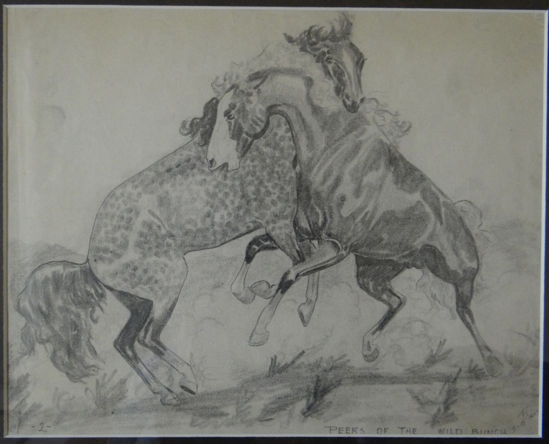 Will James, Peers of the Wild Bunch, pencil, signed "2" in lower left corner & "Big Billy" in lower right corner, 11"x 9", framed