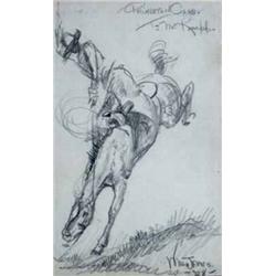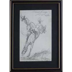 Will James (1892-1942) (Montana) Pencil Drawing. Bronco Buster. 1928. 8" x 5". inscribed "Princeton Club - To W. Knapp." signed lower right. Est $3,000 - $4,000.