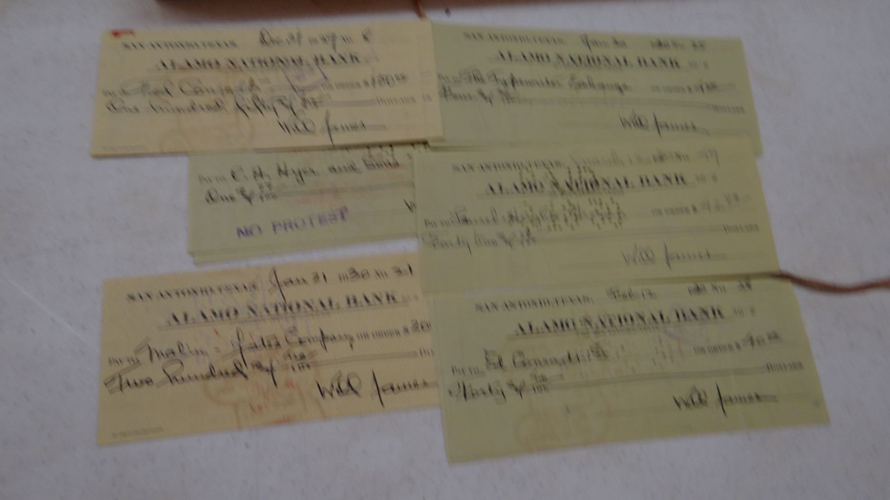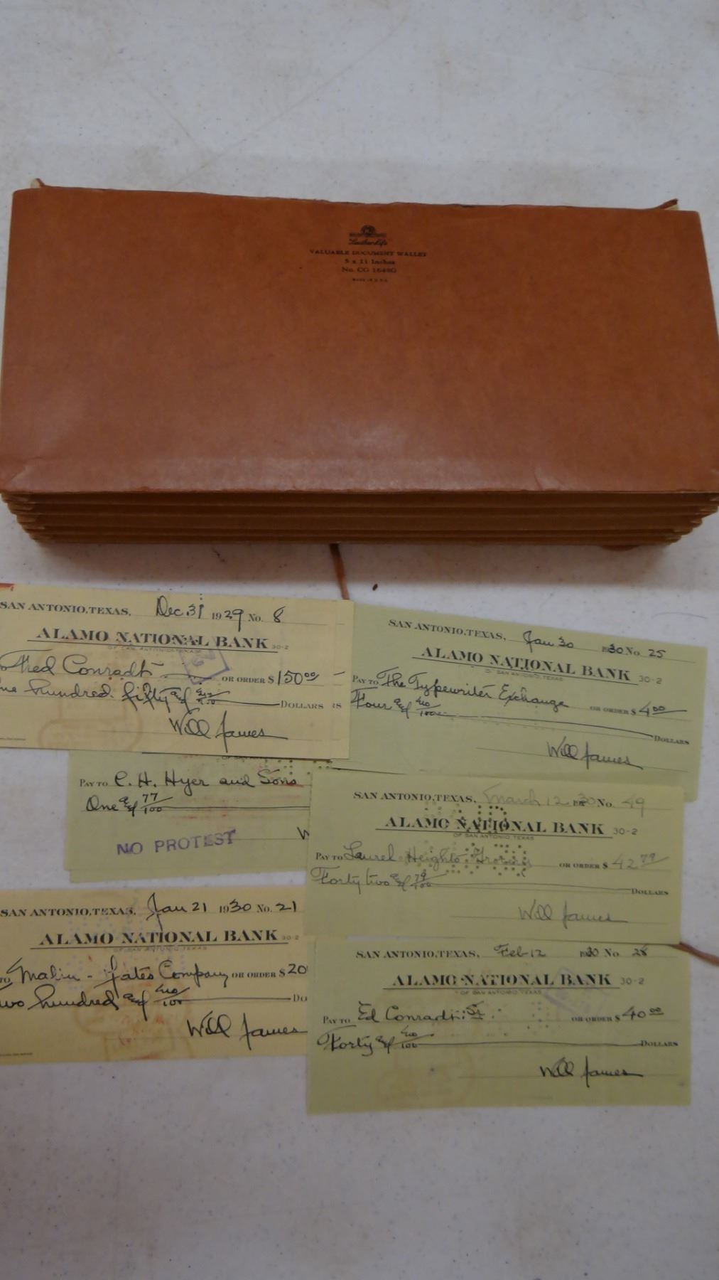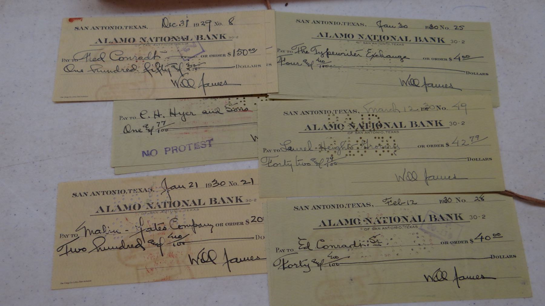 Will James memorabilia including many assorted Will James bank checks and notes, ca 1929 - 1934