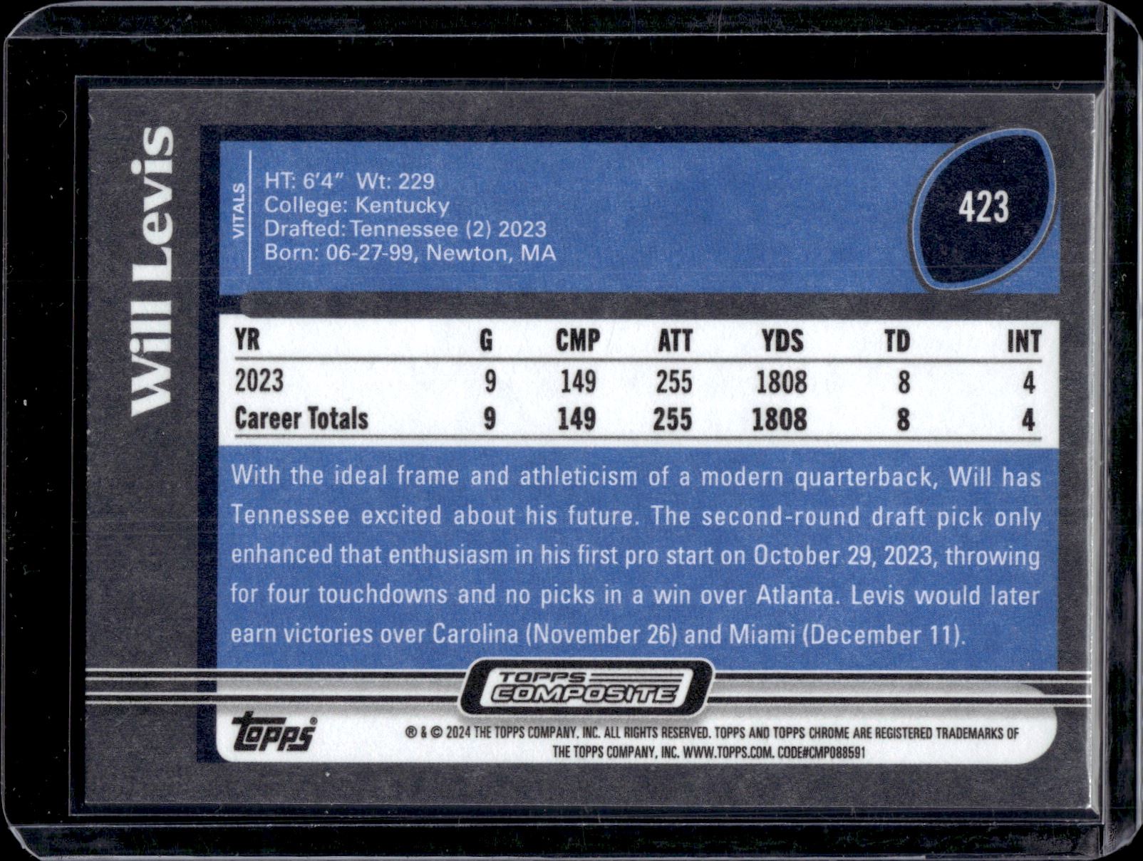 Will Levis RC 2023 Topps Composite #423