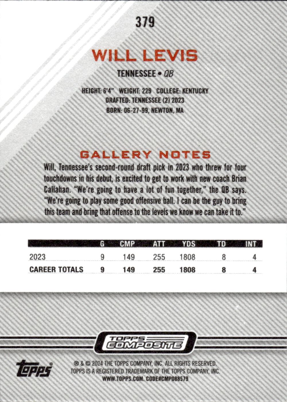 Will Levis Rookic Card Topps Composite Gallery