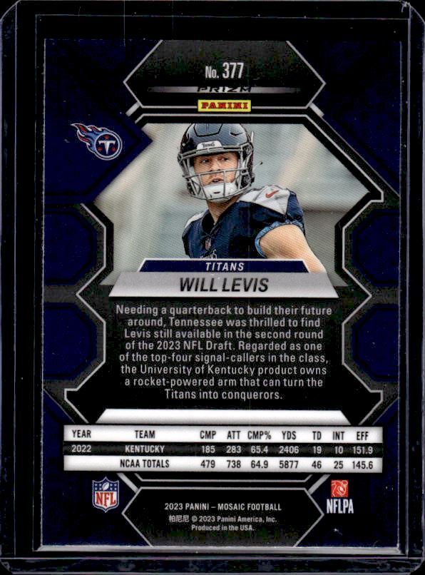 Will Levis Rookie Card 2023 Panini Mosaic #377