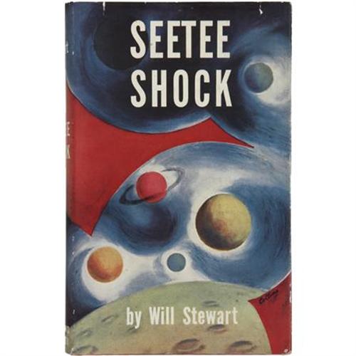 <B>Will Stewart [pseudonym for Jack Williamson]. </B></I><B><I>Seetee Shock</B></I></B></I><B>.</B></I> New York: Simon and Schuster, 1950.<BR> <BR>First edition. Twelvemo. 238 pages.<BR><BR>Publisher's red cloth with titles in silver on the spine. Light shelf wear at the edges of the boards, especially at the corners. Contents tight. Price-clipped dust jacket, designed by Edward R. Collins, with light shelf wear at the extremities, else bright. Very good. <I>From the Robert and Diane Yaspan Collection.</B></I><BR><BR><b>Shipping:</b> Books & Catalogs (<a target="_blank" href="http://www.heritageauctions.com/common/shipping.php">view shipping information</a>)