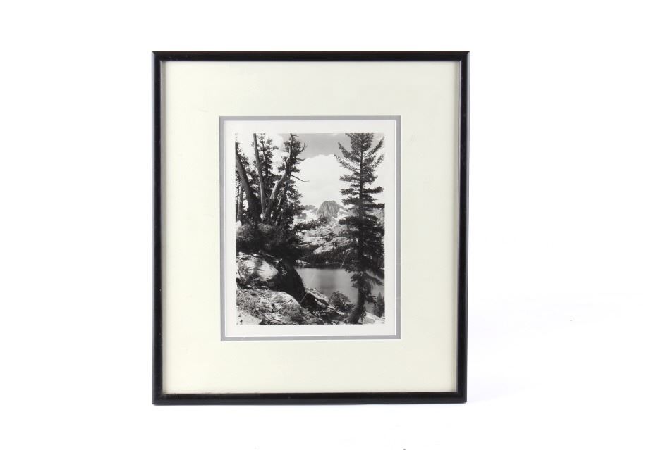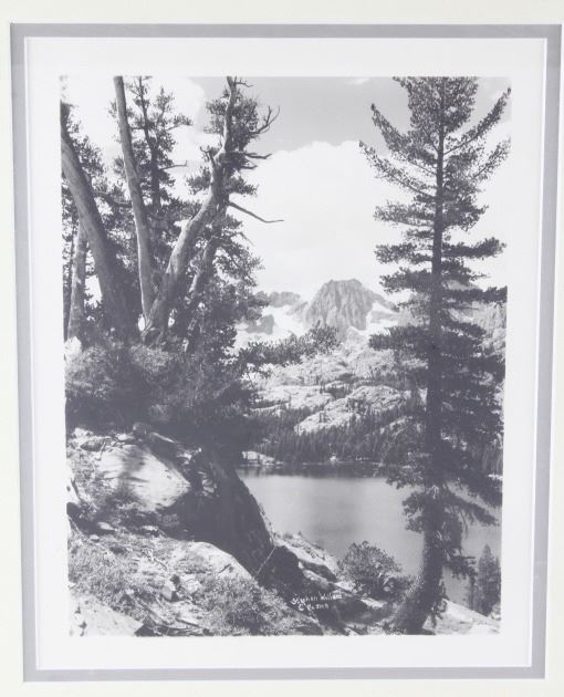 For your consideration Willard, Stephen (1894-1966) titled Shadow Lake circa 1950's. The scene shows an Eastern Sierra Nevada peak in the distance looming over "Shadow Lake." Stephen Willard (1894-1965) was one of the Southwest's premier landscape photographers. He settled in Palm Springs in 1922 and photographed desert landscapes until he moved to the Owen Valley in 1947 and opened his studio in Mammoth Lakes. From his base in the mountains, he photographed the magnificent Easter Sierras. The Palm Springs Desert Museum is the repository of Willard's negatives and prints. The condition of this framed photograph is good with some wear or repairs to the frame but good overall display condition to the artwork itself. The measurements of this framed photo are 17" x 15 1/2" and the visible art measures 10 1/4"8 1/4".