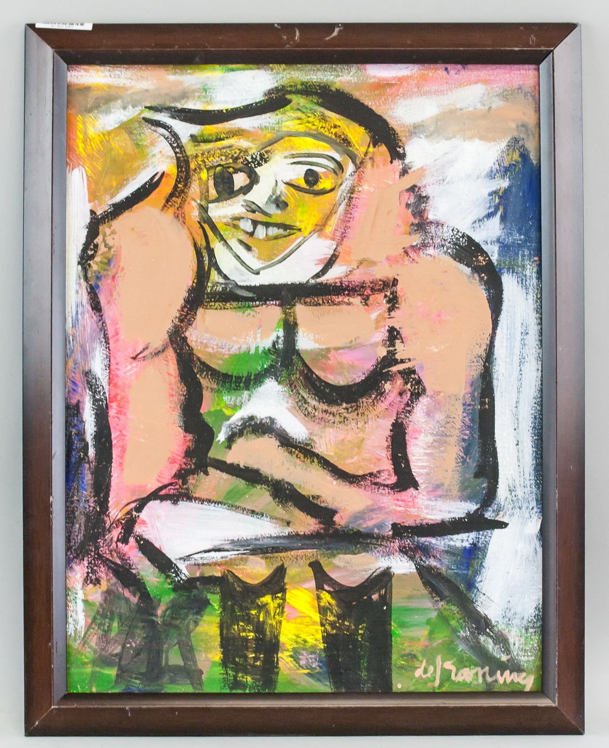 Oil on canvas, framed. Featuring a nude woman. Signed de Kooning on the lower right corner. Attributed to Willem de Kooning (1904-1997, American). 50 x 38 cm (20 x 15 inches) Frame: 56 x 44 cm (22 x 17.25 inches). Provenance: This lot carries limited provenance from a Southern Ontario estate