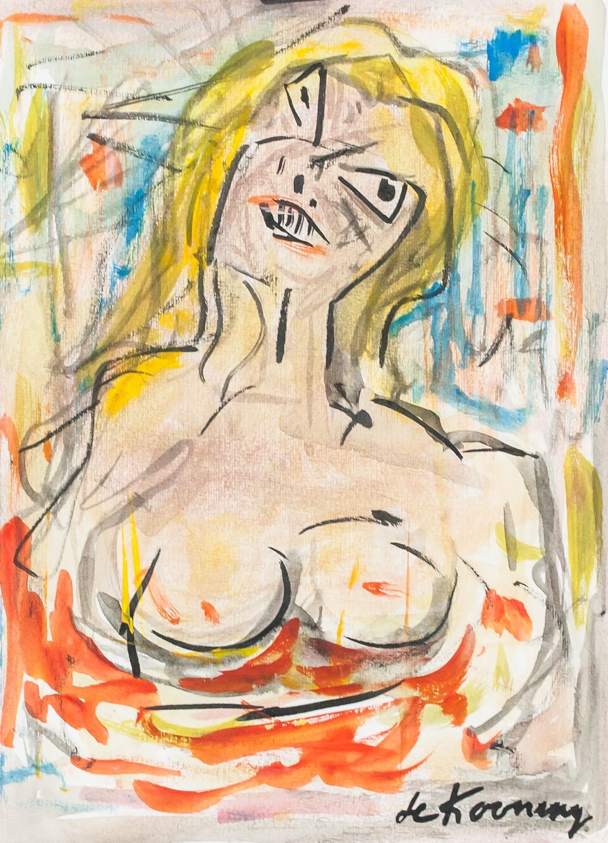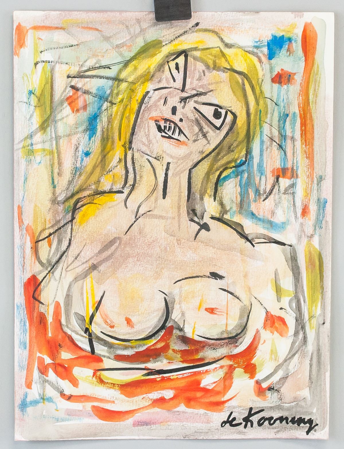 Watercolor on paper. Featuring portrait of a nude woman. Signed "de Kooning" in the bottom right corner. Attributed to Willem de Kooning (1904-1997, Dutch-American). 29 x 21.5 cm (11.5 x 8.5 in). Provenance: This lot carries limited provenance from a Southern Ontario estate.