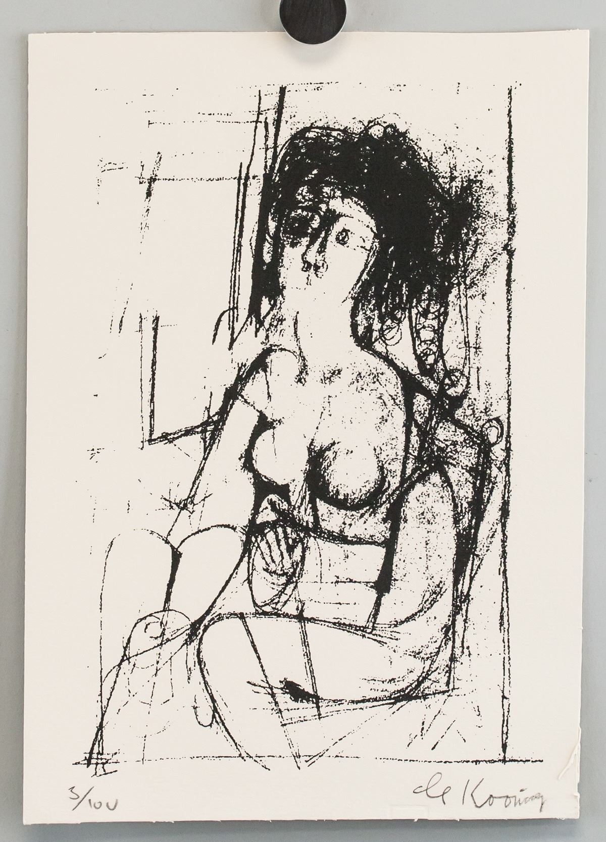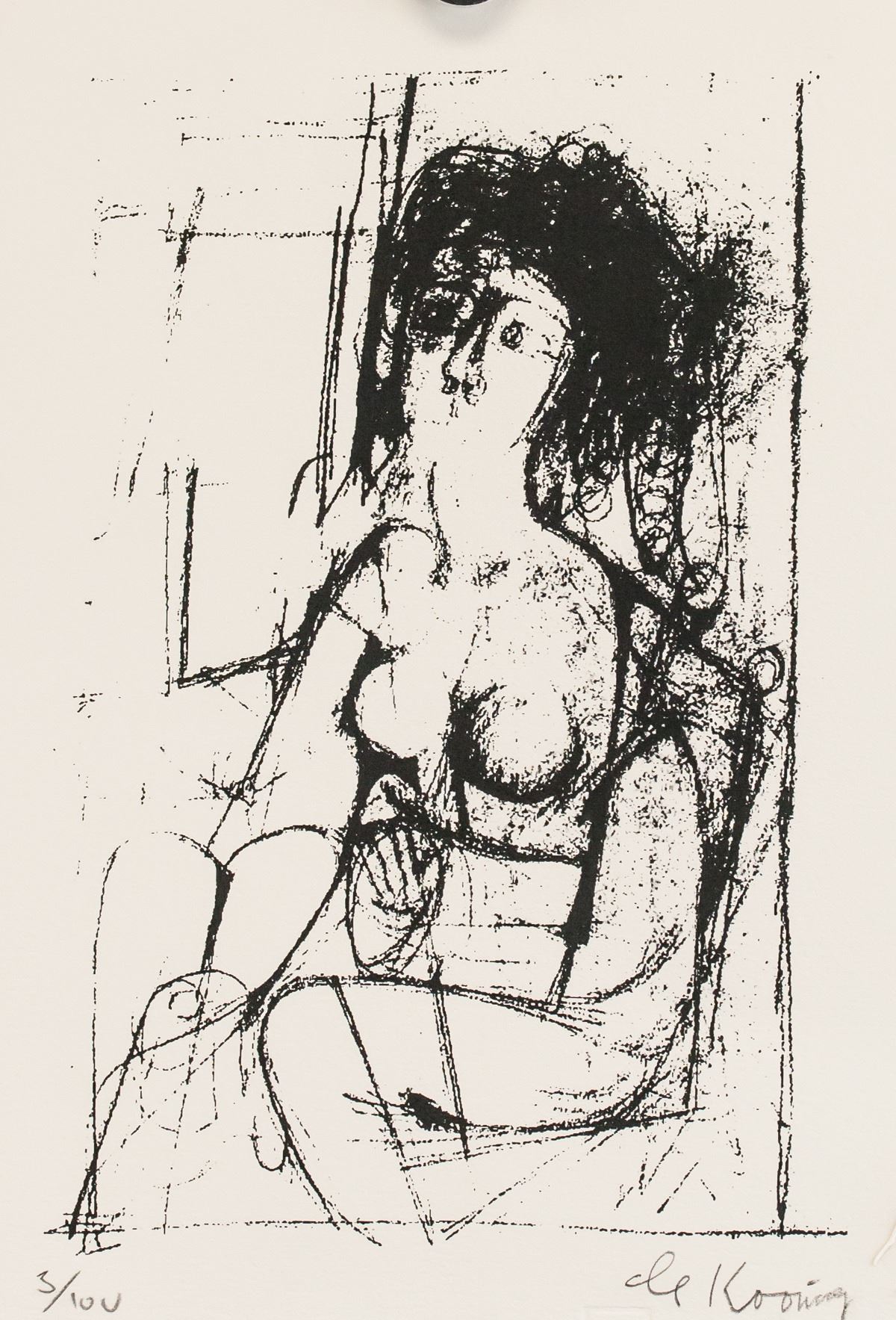 Silkscreen on paper. Featuring portrait of a half-nude woman. Signed "de Kooning" in the bottom right corner. "3/100" inscribed in the bottom left corner. "VI" inscribed on verso. "GOLDWIN ART INC." stamped on verso. Attributed to Willen de Kooning (1904-1997, American). 29.5 x 21 cm (11.5 x 8.25). Provenance: This lot carries limited provenance from a Southern Ontario estate.