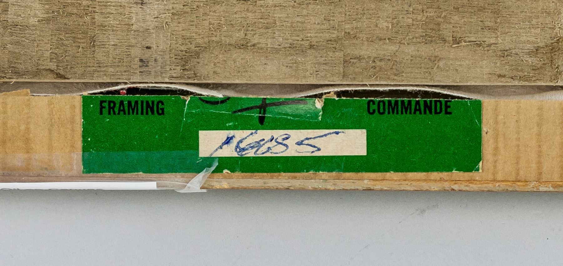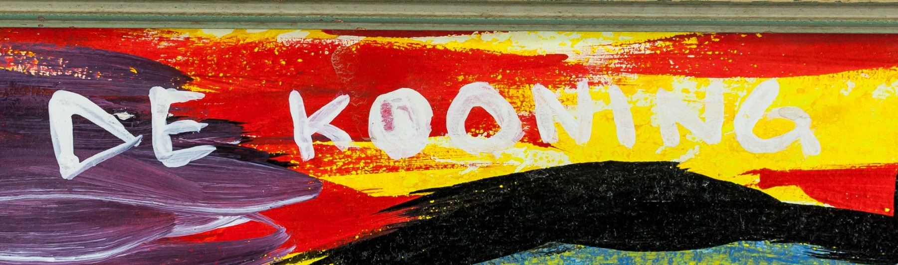 Oil on canvas, stretched and framed. Featuring an abstract expressionist composition. Signed DE KOONING near the upper margin. On stretcher bar, a green label inscribed FRAMING COMMANDE 16085, verso. On stretcher bar itself, inscribed 1537, verso. Attributed to Willem de Kooning (American, 1904-1997). 44 x 46 cm (17.3 x 18.1 inches). PROVENANCE: Southern Ontario estate