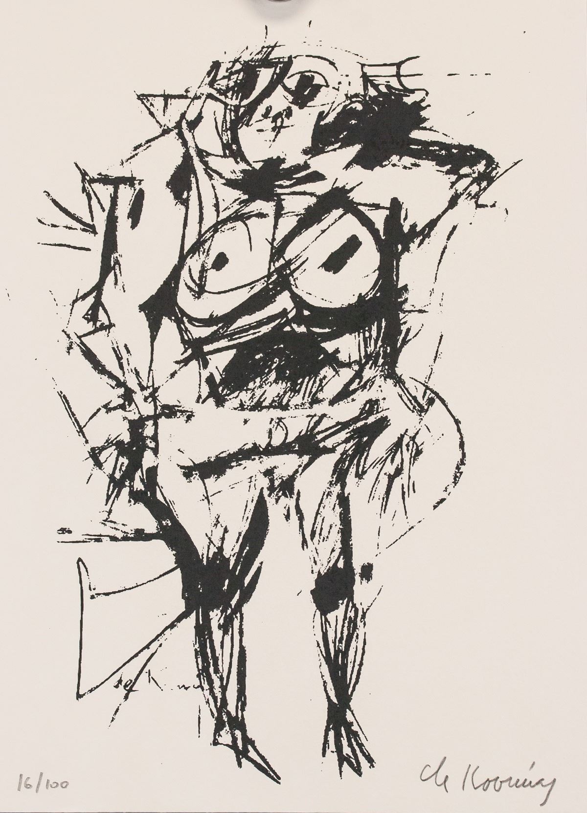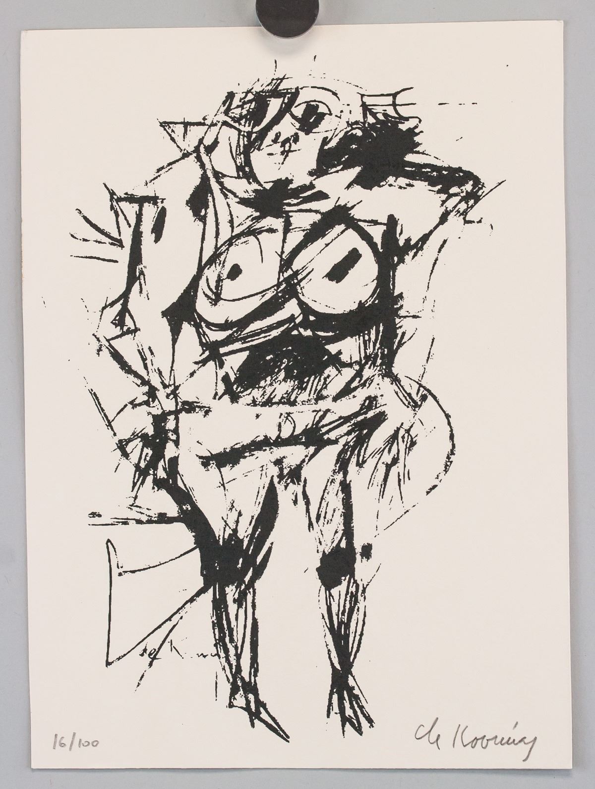 Silkscreen on paper. Featuring expressionist portrait. Signed "de Kooning" in the bottom right corner. "16/100" inscribed in the bottom left corner. "IX" inscribed on verso. "GOLDWIN ART INC." stamped on verso. Attributed to Willem de Kooning (1904-1997, Dutch-American). 29 x 21 cm (11.5 x 8.25). Provenance: This lot carries limited provenance from a Southern Ontario estate.