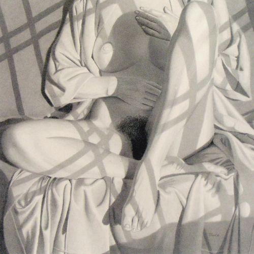 UNTITLED; NUDE IN SHADOWS; 1986 - Pencil - on paper - <Br>14 ins. X 14 ins.
